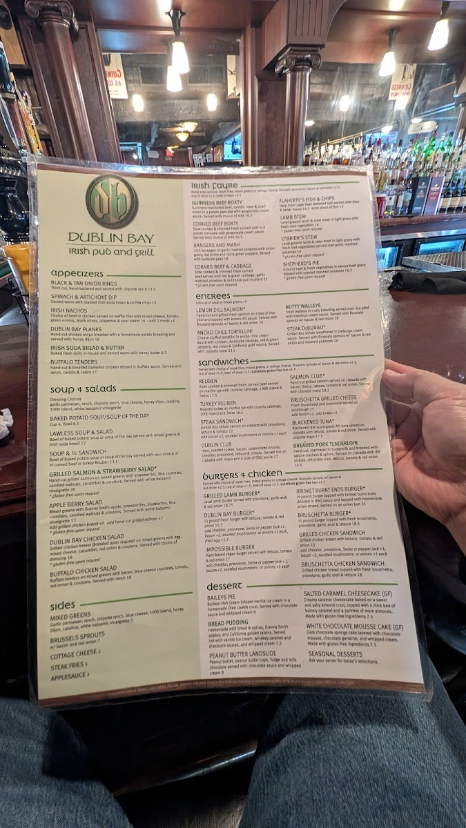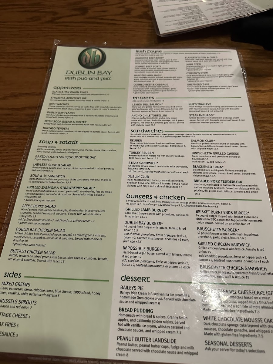 Guinness-marinated beef, carrots, peas & pearl onion in a potato pancake with gorgonzola cream sauce. Served with choice of side
