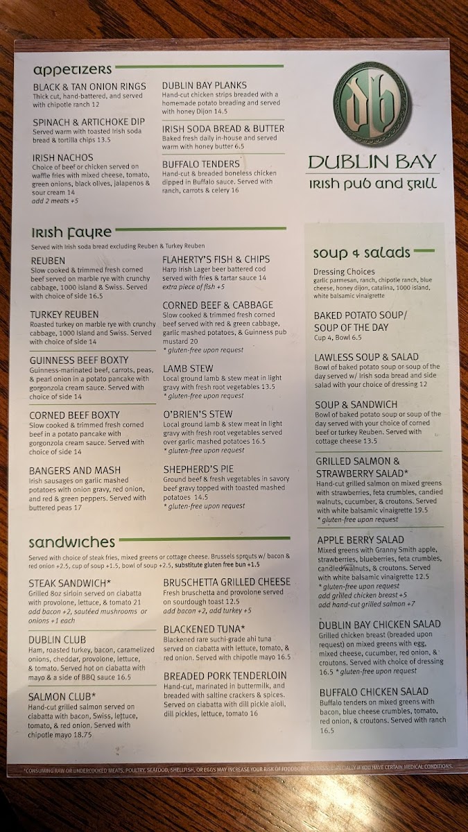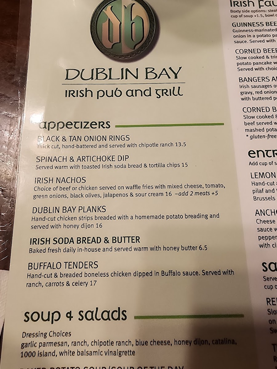 Bowl of baked potato soup or soup of the day served with mixed greens & Irish soda bread
